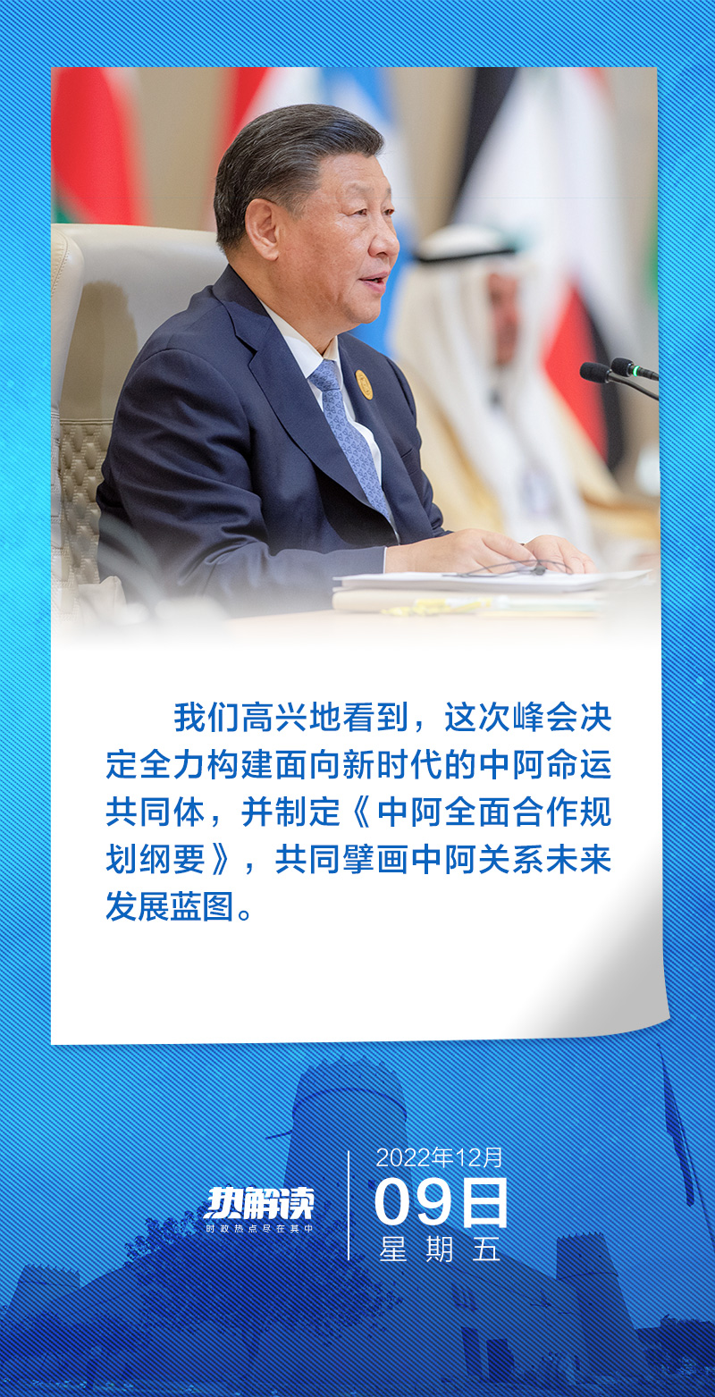 “让我们弘扬中阿友好精神,携手构建面向新时代的中阿命运共同体,一起开创中阿关系更加辉煌灿烂的明天!”2022年12月,习近平主席在首届中国-阿拉伯国家峰会开幕式上如此期许。