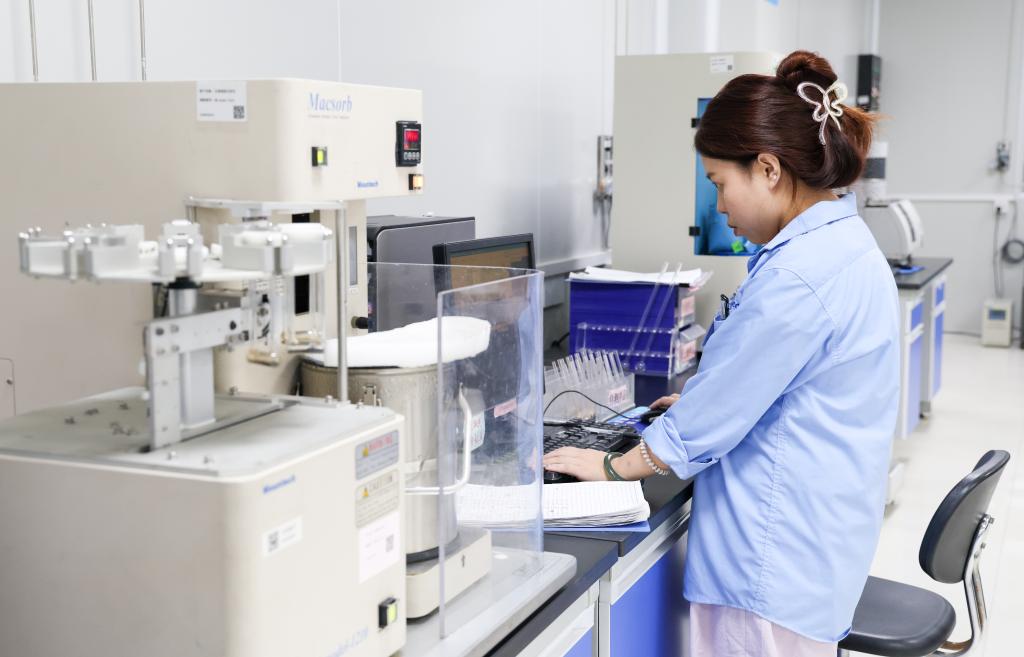 研发人员在三环集团潮州厂区的测试分析中心工作(2025年5月28日摄)。新华社记者 毛思倩 摄