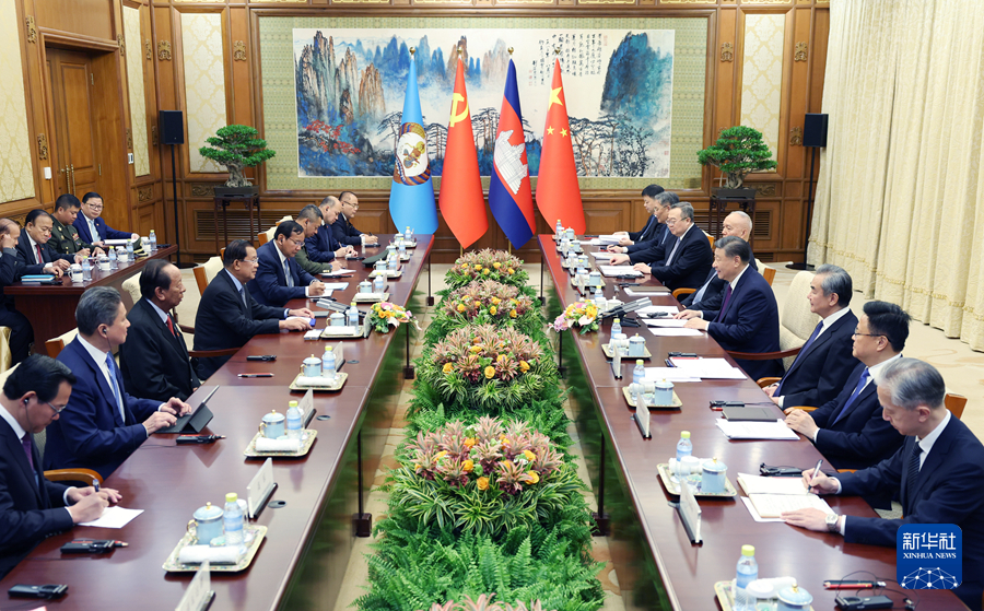 习近平同柬埔寨人民党主席、参议院主席洪森会谈