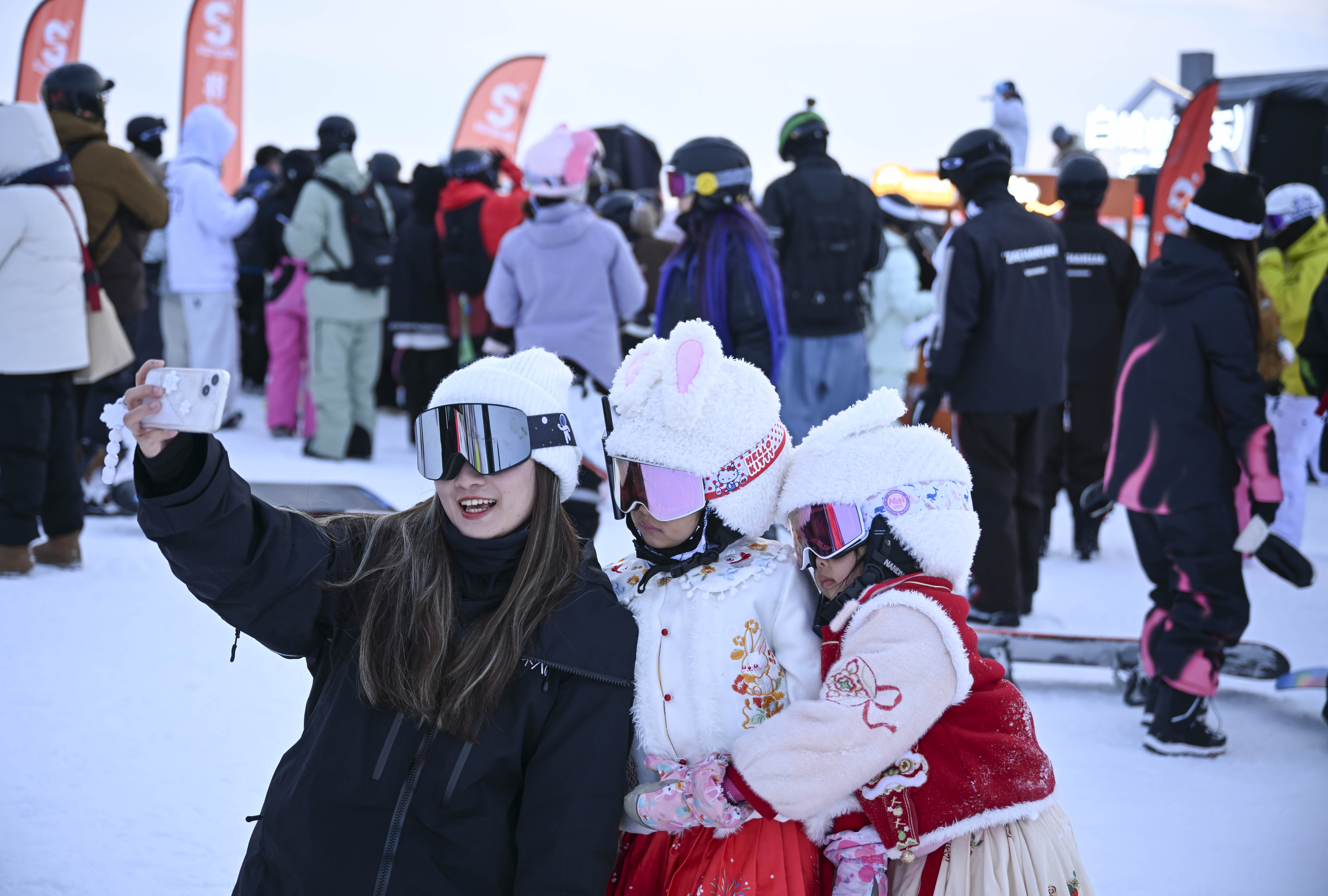 1月21日,游客在将军山国际滑雪度假区合影。 新华社记者 胡虎虎 摄