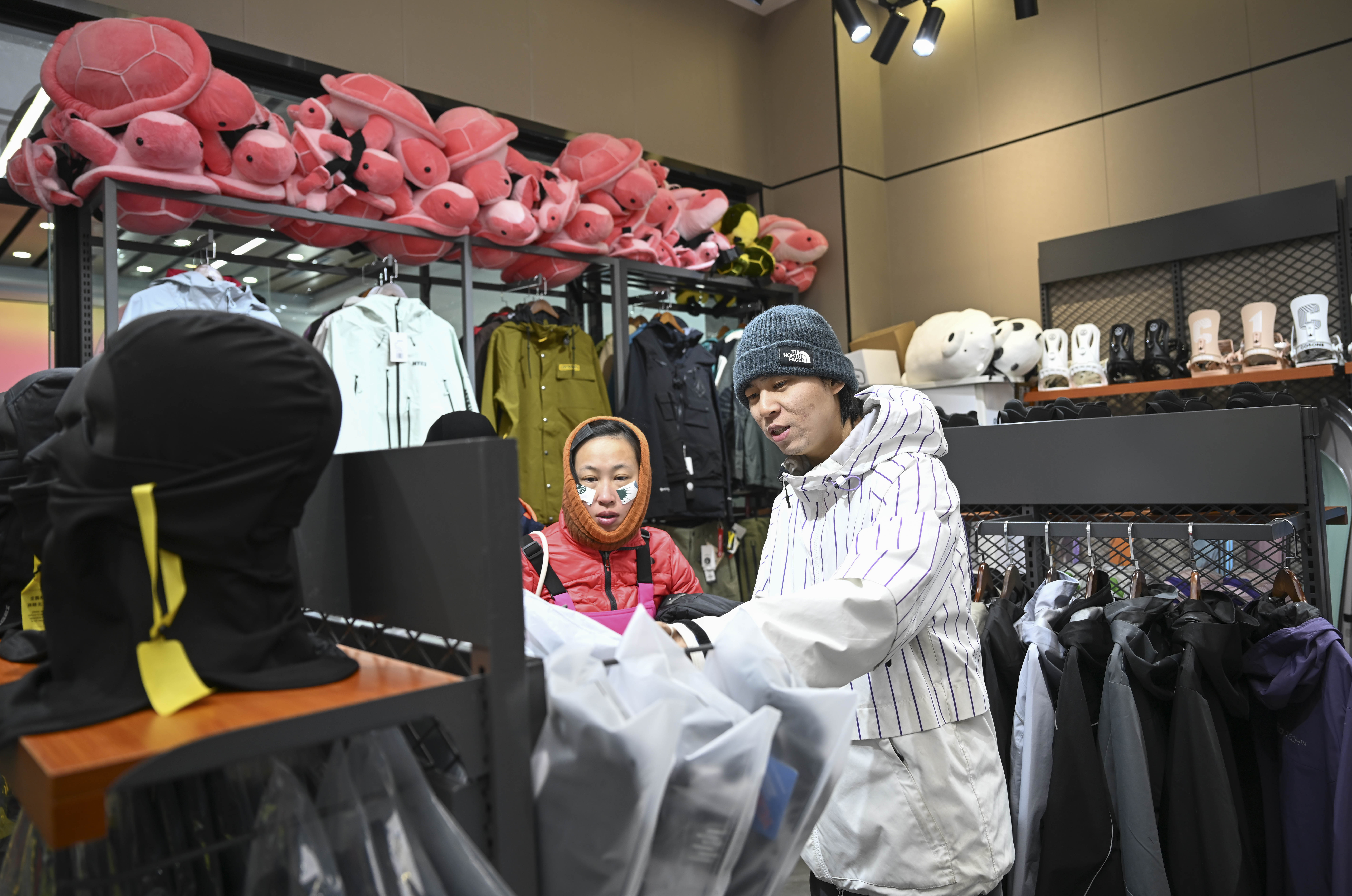 1月24日,游客在将军山国际滑雪度假区的一家雪具店选购商品。 新华社记者 胡虎虎 摄
