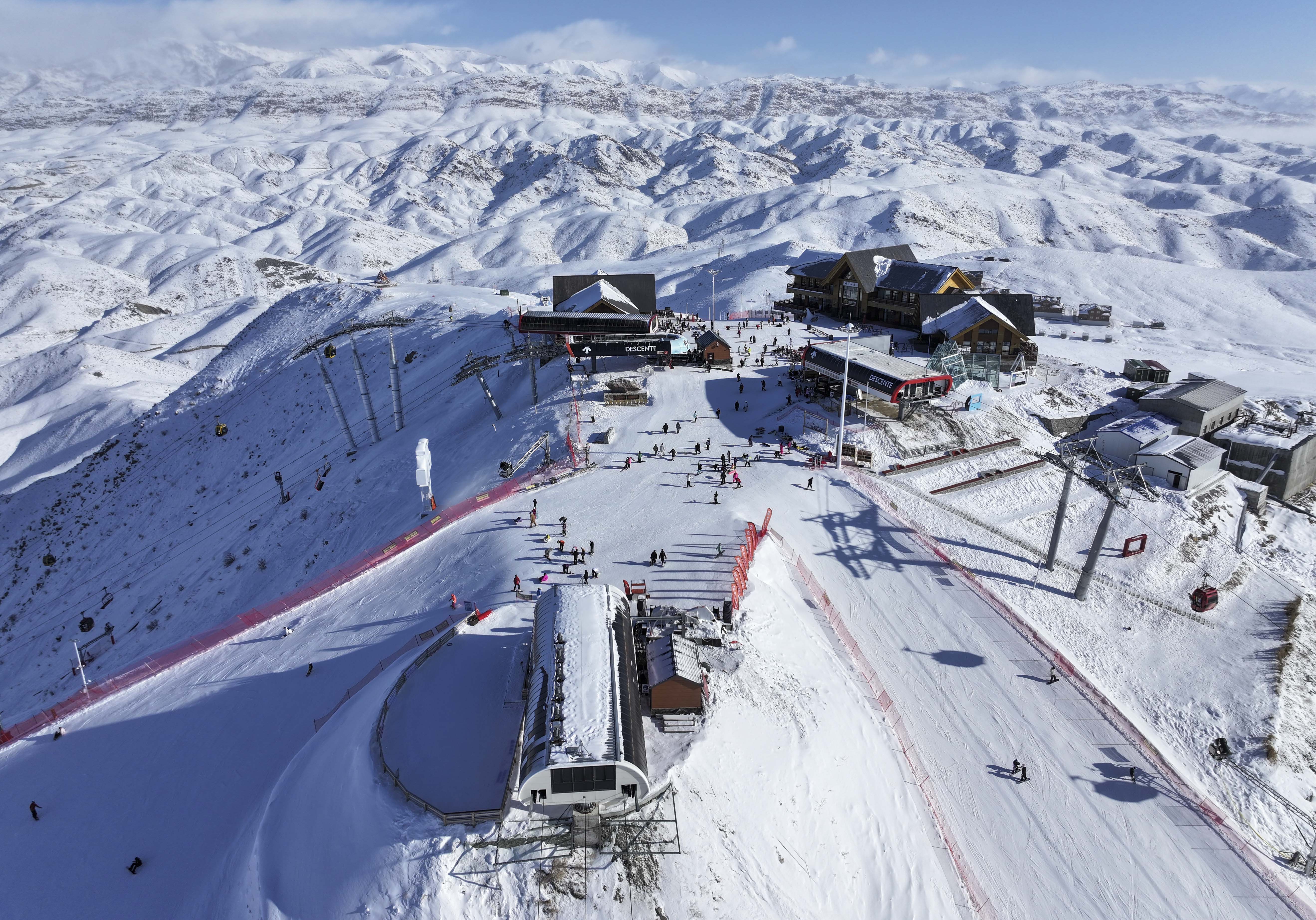 1月24日,游客在阿勒泰市将军山国际滑雪度假区滑雪(无人机照片)。 新华社记者 胡虎虎 摄