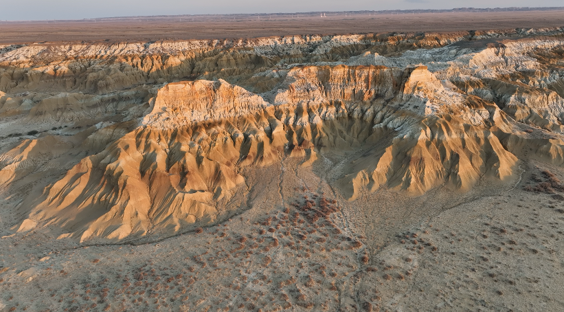 吉木乃野狼谷位于吉木乃县喀尔交乡政府所在地229省道岔路口15公里,距离吉木乃县城72公里,距离草原石城景区54公里,距离229省道与217国道(布尔津县与吉木乃县)岔路口24公里。喀尔交野狼谷属于典型的雅丹地貌类型,是一列列断断续续延伸的长条形土墩与凹地沟槽间隔分布的地貌组合,是地下裂谷作用而形成。这里的景色早、中、晚各不相同,早晨呈现金色、中午呈现黄色、晚上呈现红色,从不同的角度、光线,可以展现出不同的绚丽景象。