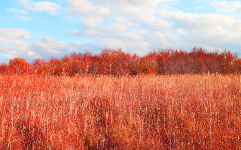 克孜勒哈英红桦林地处庄各拉山南麓,是卡拉乌苏河发源地,固地势低凹,形成迟缓融化的河谷冻土沼泽,是全国罕见的面积较大的小叶沼泽桦集中生长地。红桦林叶小,秋季呈红色,树干呈泛红色的白色,多为灌木状、呈团状密集分布,沿土壤表面有小的起伏,生长有藓类、苔草、紫羊芳、狒子茅、黄花、野豌豆、珠芽蓼等。土壤为草甸—沼泽土。林内有野兔、黄羊、狐狸等野生动物出没,而且是珍贵鸟类—雷鸟的栖息场所,这里景色优美且罕见,是科研、摄影、休闲的佳境。