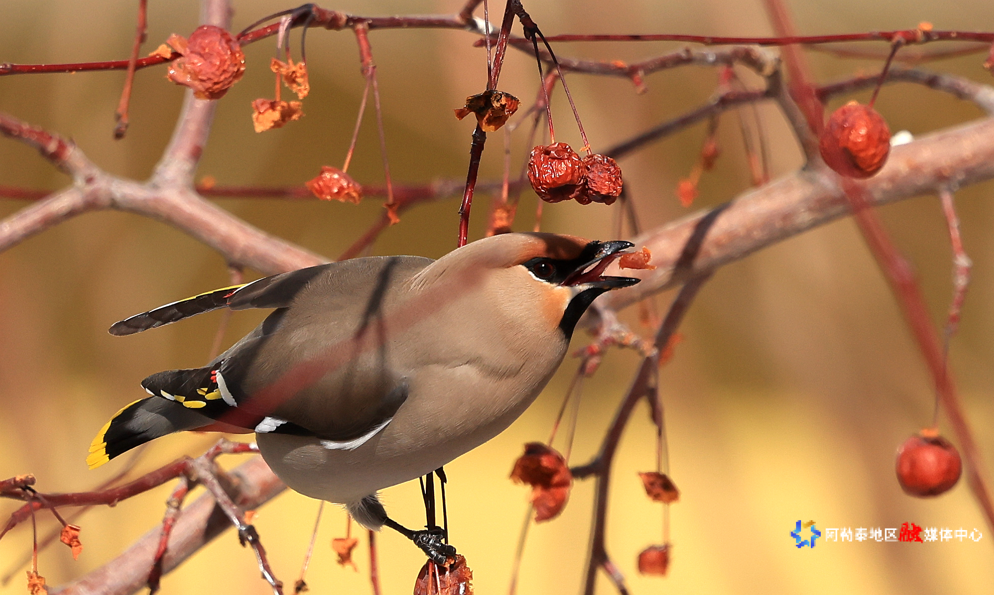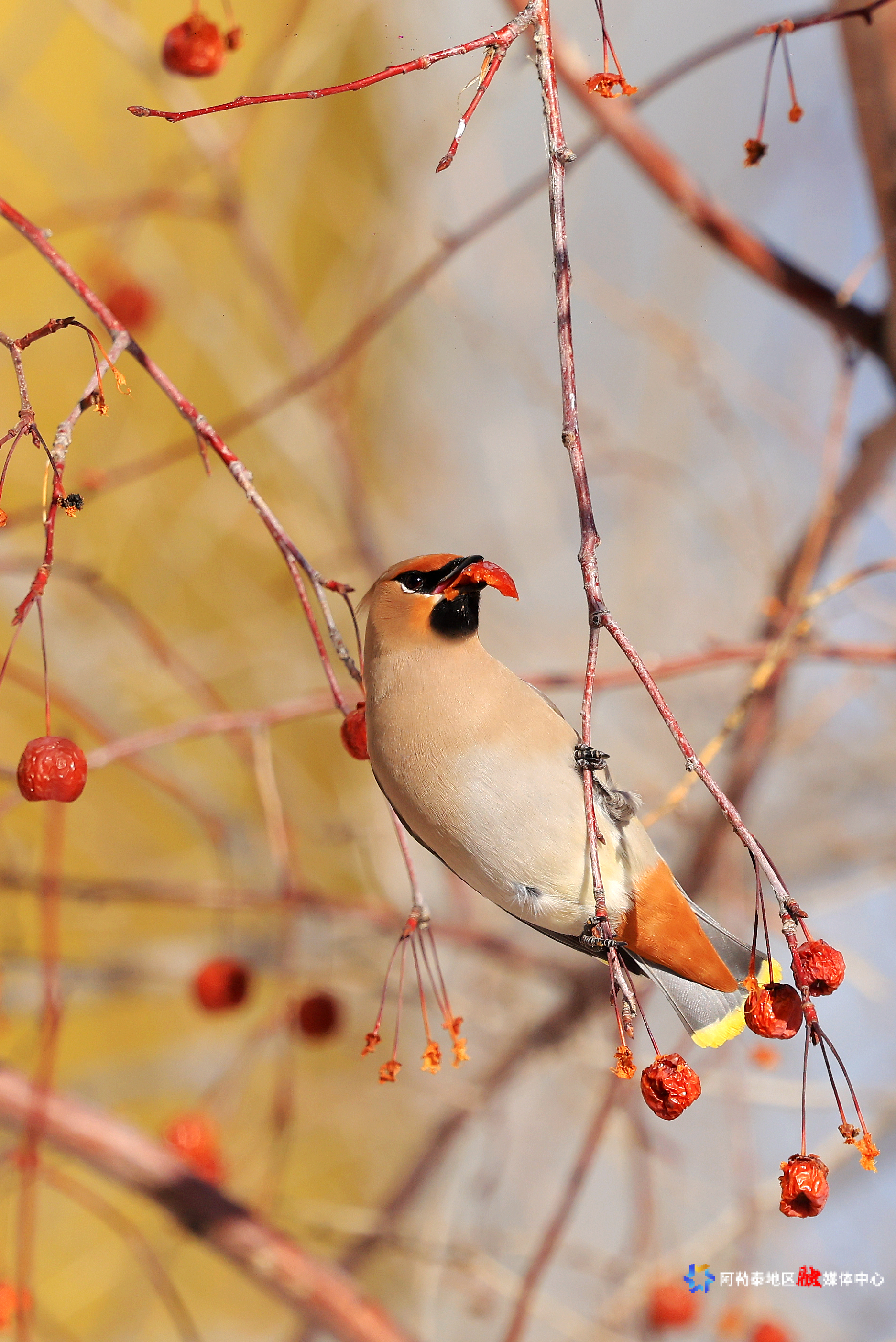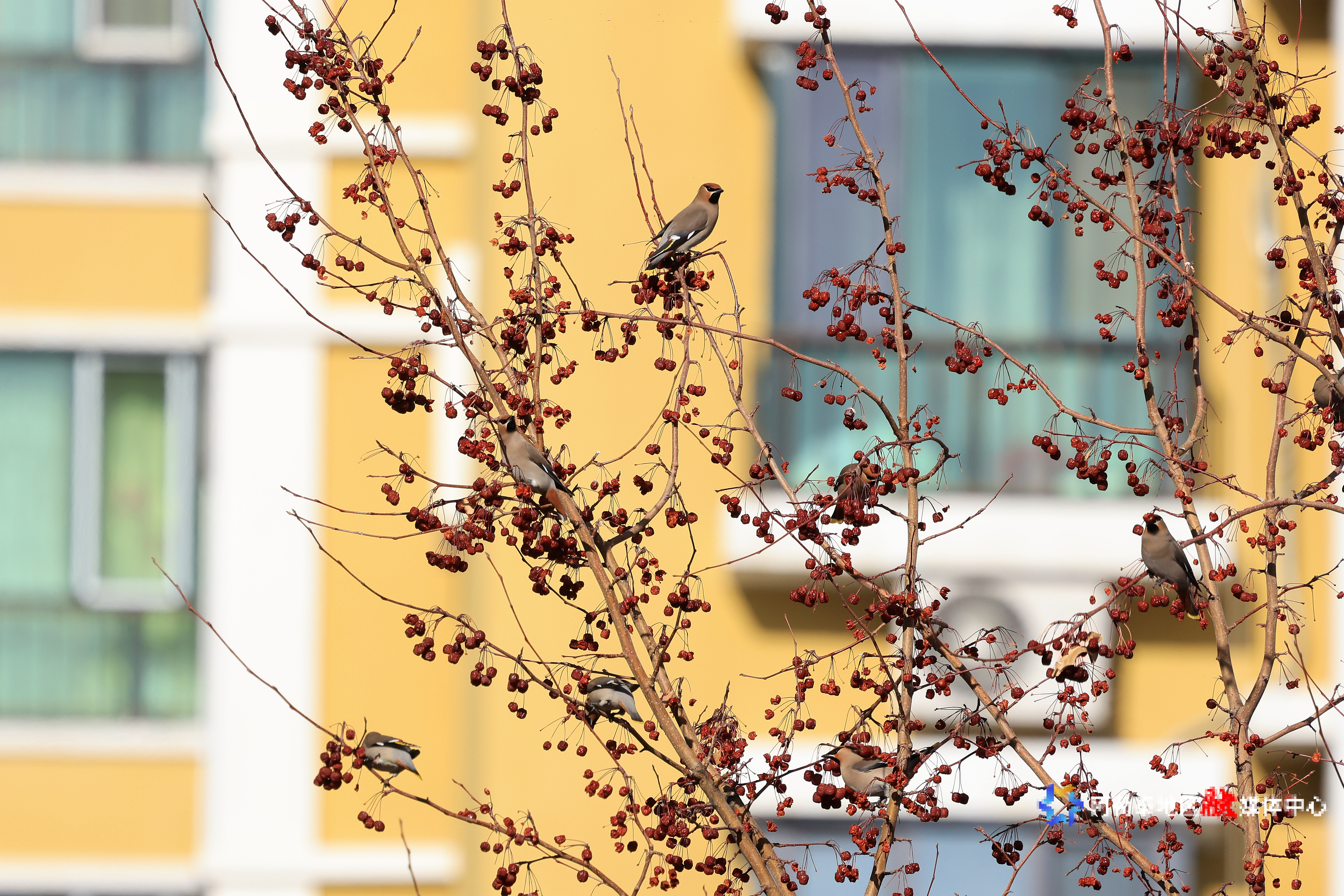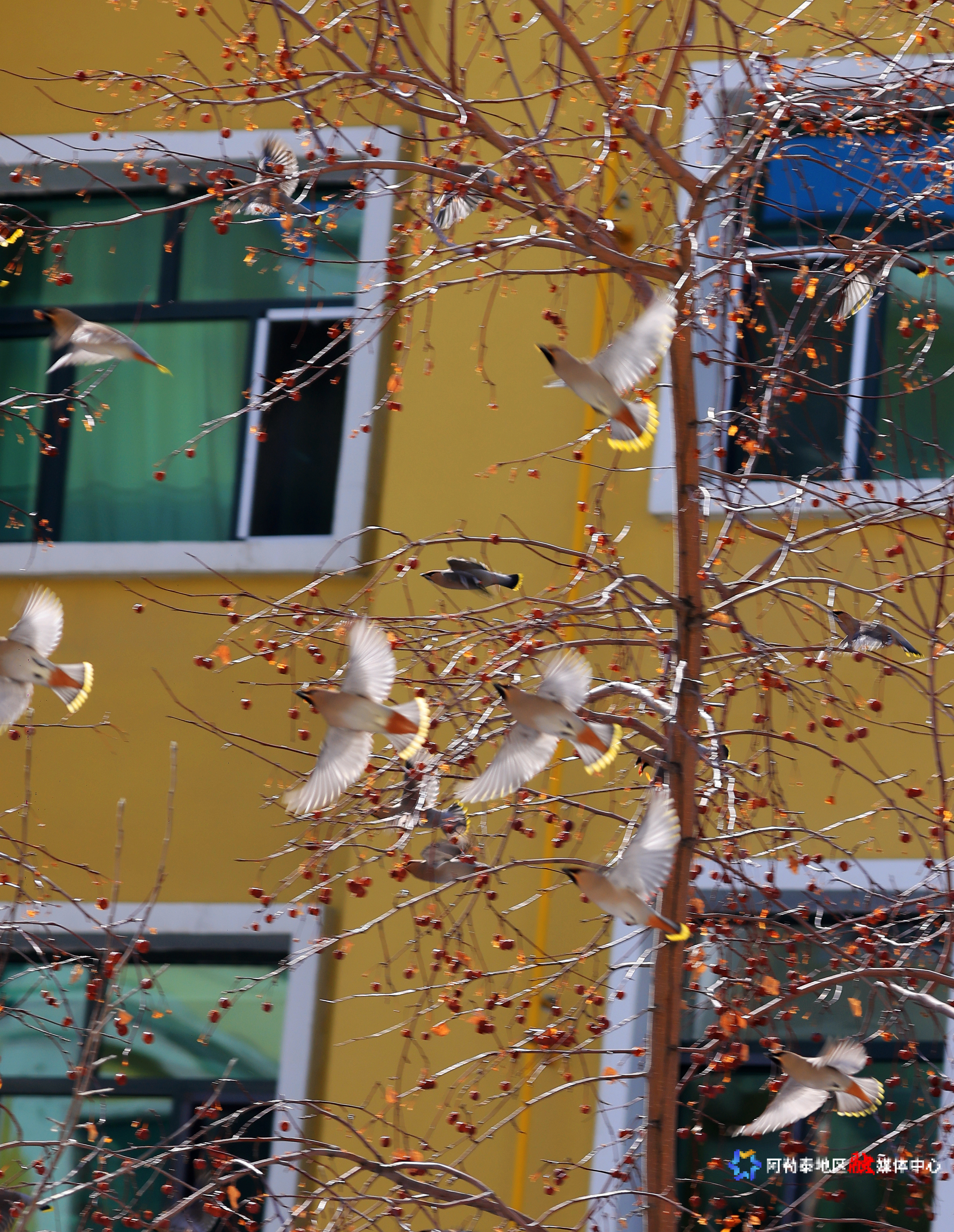 阿勒泰新闻网-阿勒泰地区融媒体中心(记者 阿尔达克·拜斯汗)3月18日,阿勒泰市某小区内,几只太平鸟在枝头飞来飞去,时而啄食红果,时而嬉戏打闹,为阳光明媚的春日增添了一抹灵动与生机。