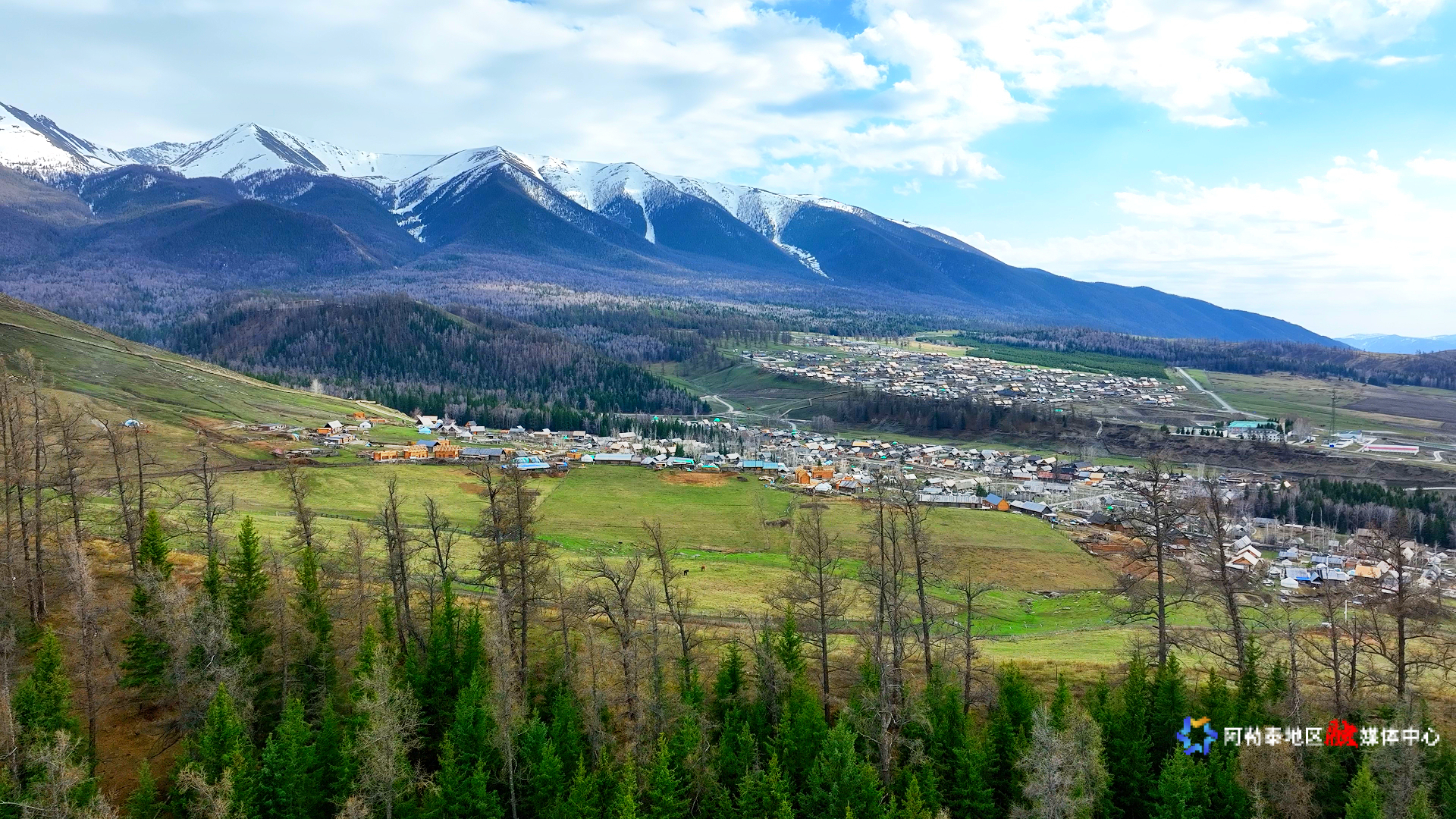 新疆“西北第一村”白哈巴村航拍全景。