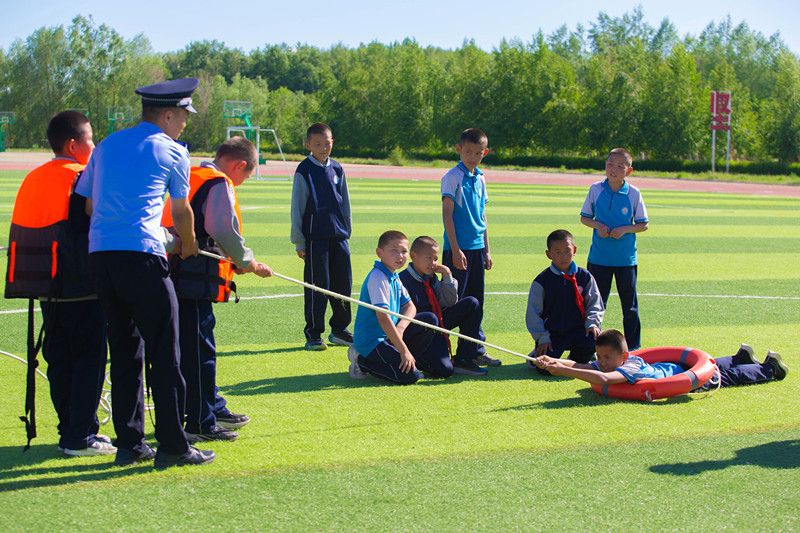活动现场,民警结合自身丰富的救援经历,从远离危险水域、正确穿戴救生衣、不慎落水如何自救等方面,向同学们进行预防夏季溺水知识普及。同时,民警还与同学们进行了一系列精彩纷呈的互动。通过生动鲜活的案例讲解,将抽象的知识具象化,让同学们深刻认识到溺水的危险;通过互动问答的方式,充分调动同学们的积极性,引导他们主动思考。在这个过程中,民警向同学们深入浅出地讲解了具体自救、互救的操作方法,有效增强了学生们的避险意识,使他们清楚认识到在遇到溺水的情况时,该如何正确地进行自救以及科学地施救。