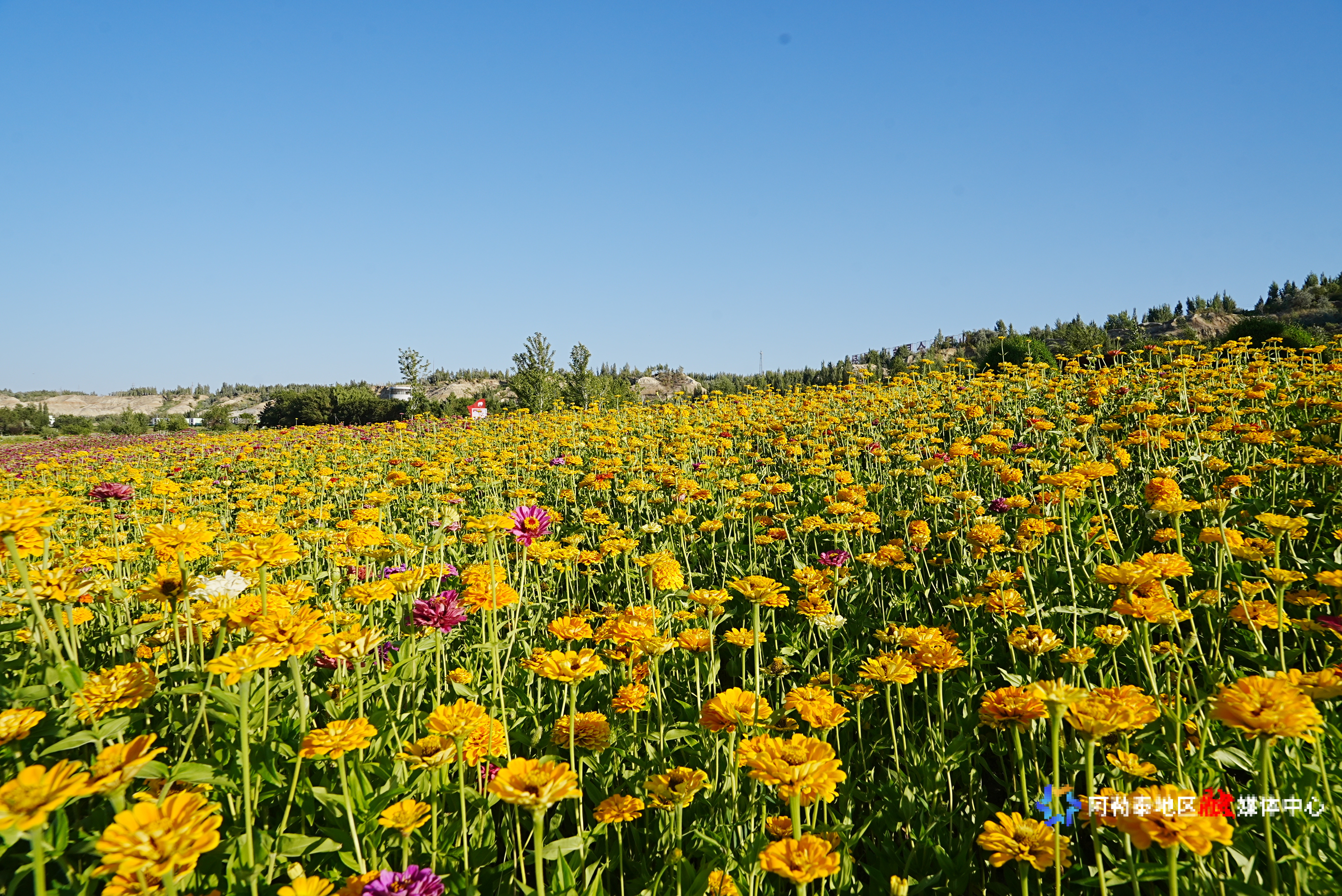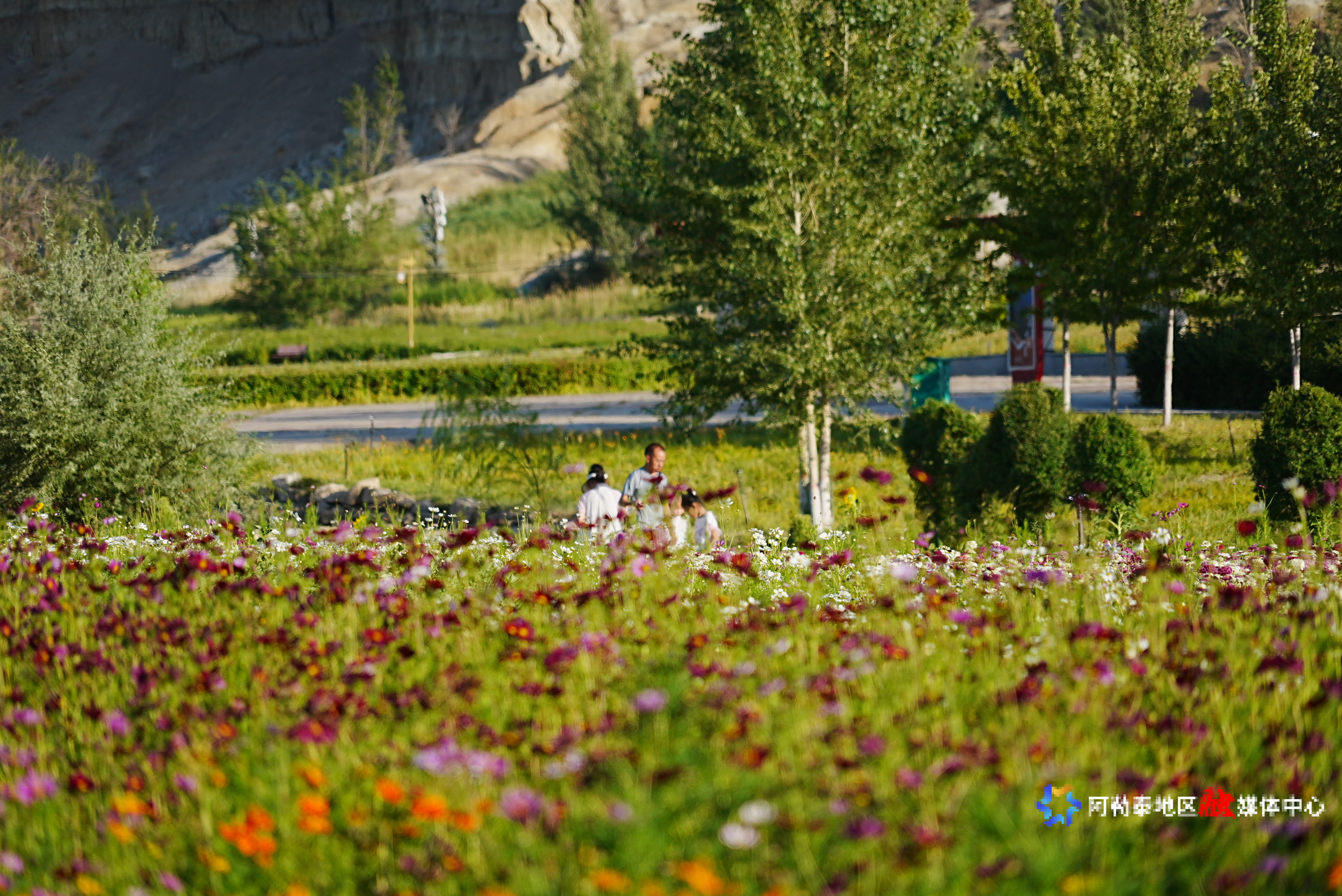 阿勒泰新闻网-阿勒泰地区融媒体中心(记者 代维利)8月,北屯市得仁山北坡的花海正以最绚烂的姿态铺展开来。北纬47°的独特光照条件下,百日菊、金鸡菊、天人菊沿着15°—25°的缓坡次第绽放,橙黄、绯红、粉白的色块在山地间流动,宛如大自然打翻了调色盘。