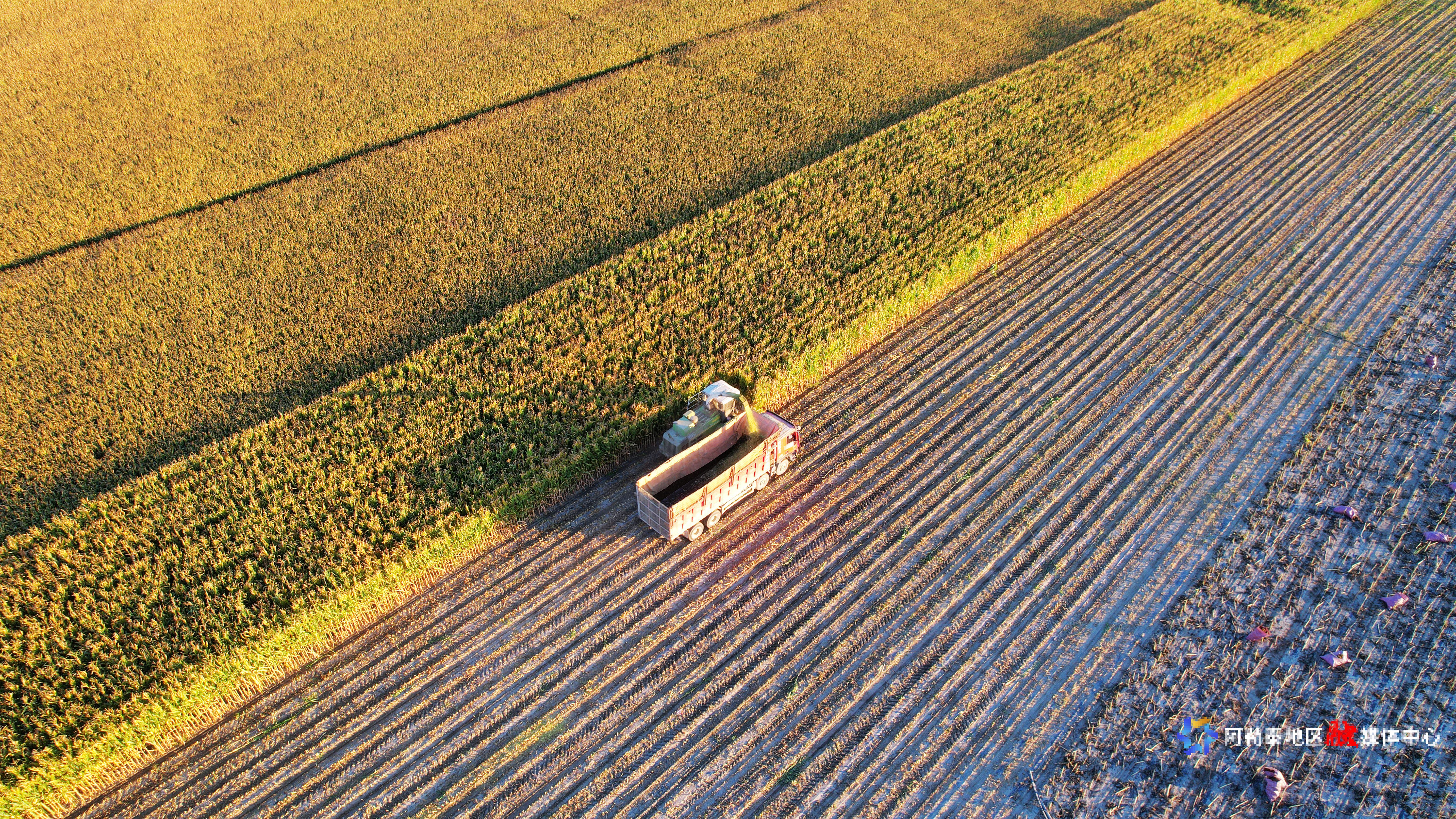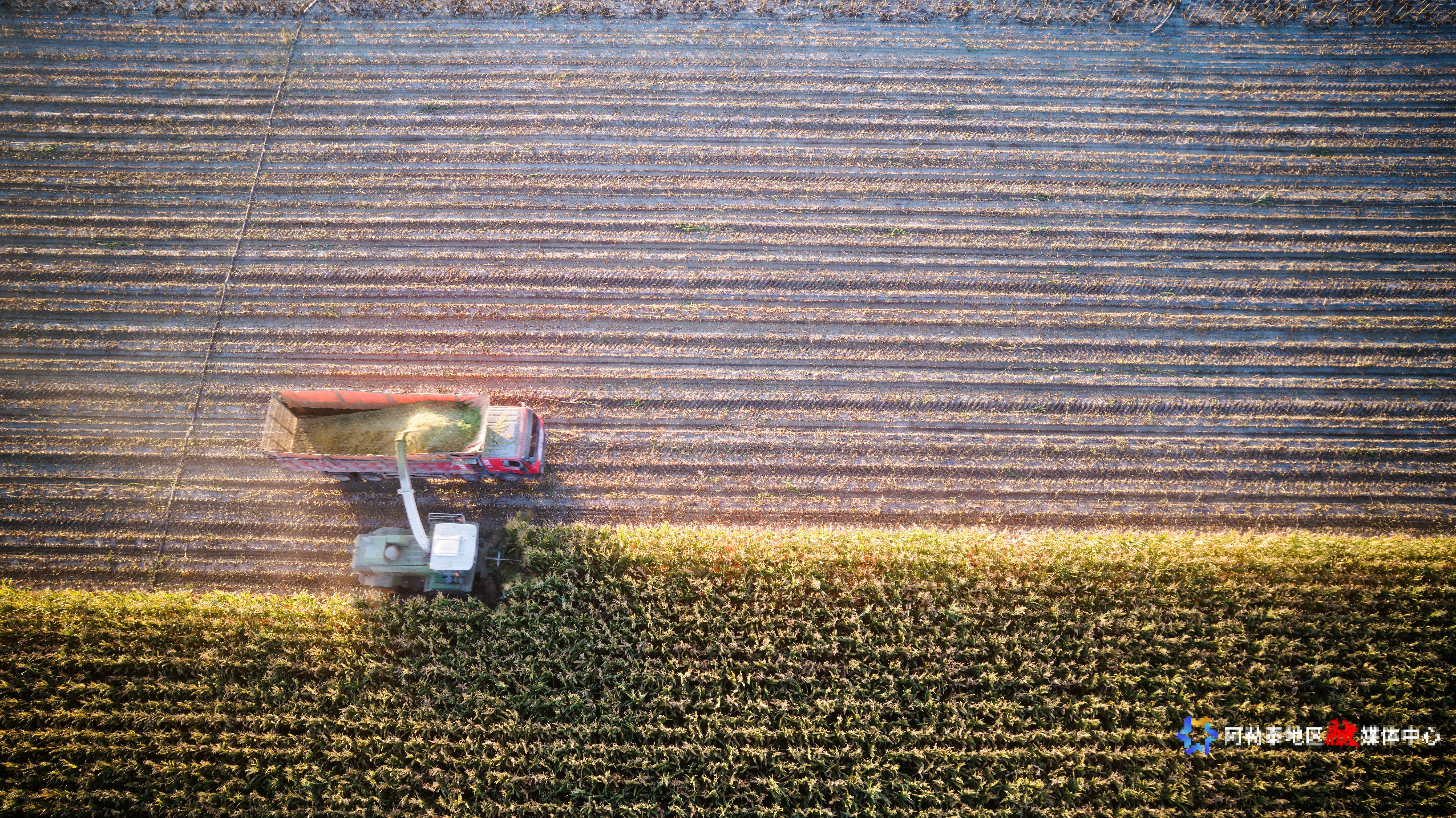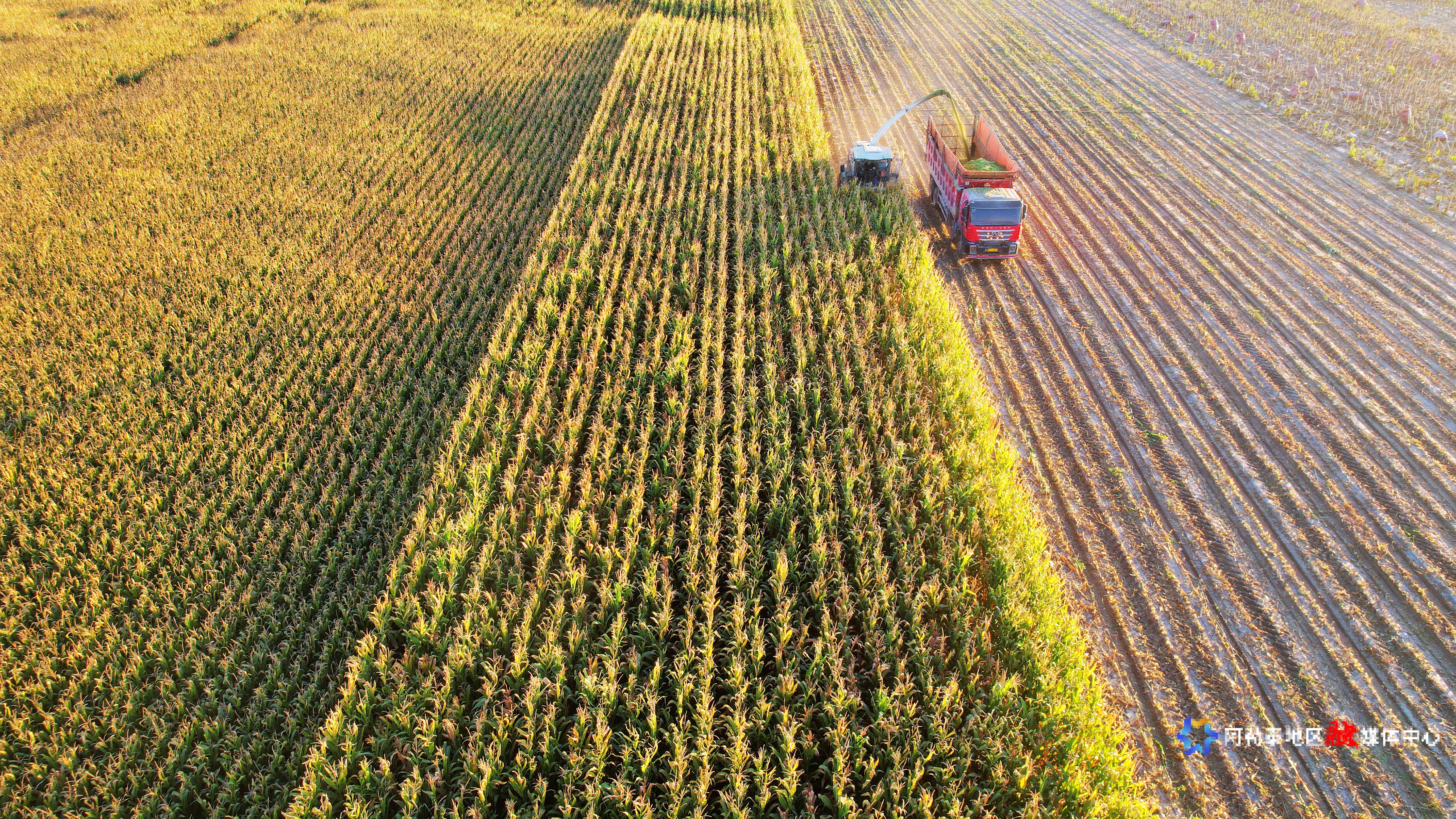 金秋时节,福海县迎来青贮玉米收割期,数台大型收割机在田间穿梭,呈现出一派繁忙景象。