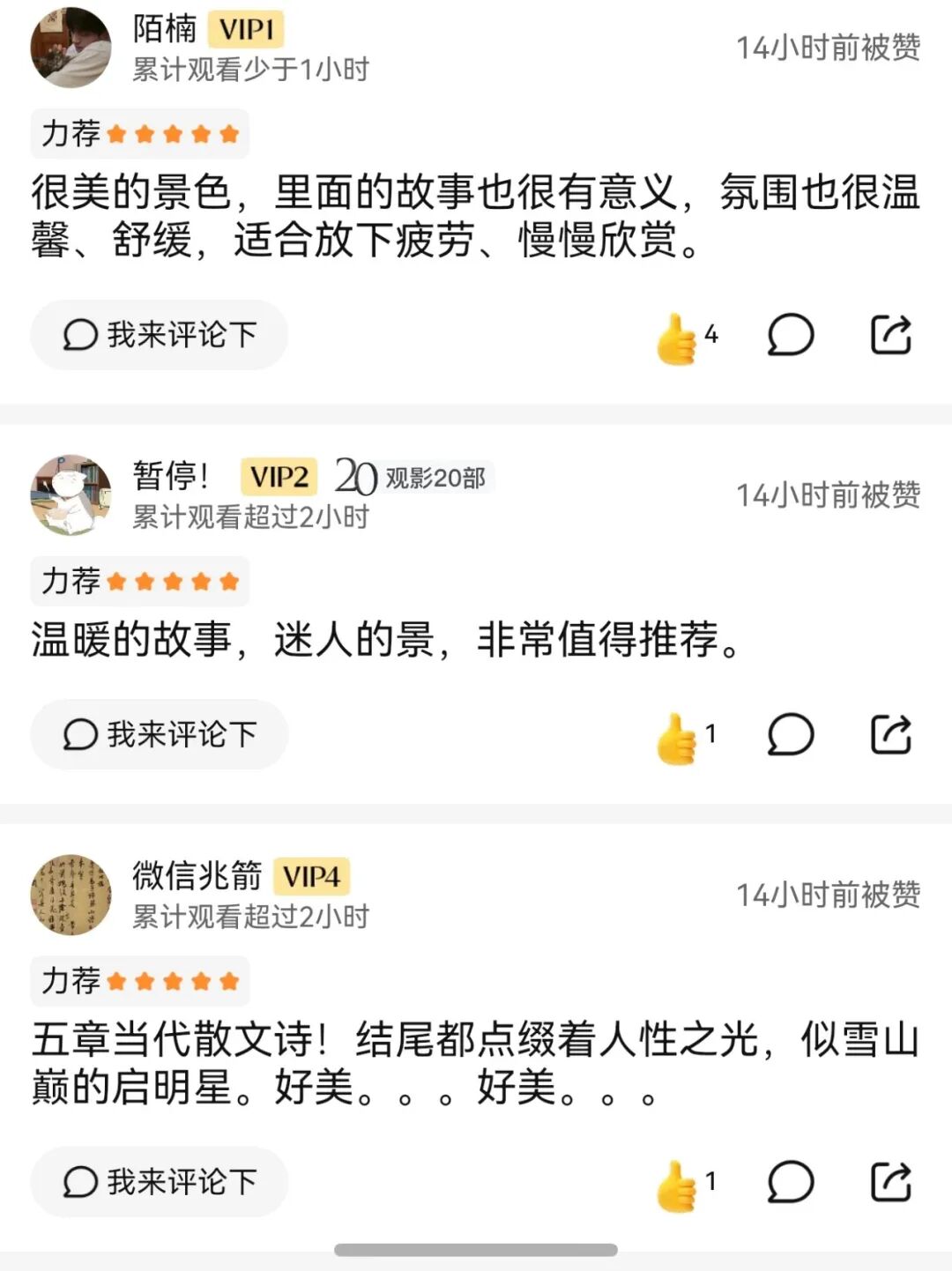 不少网友在评论区留下观影感受