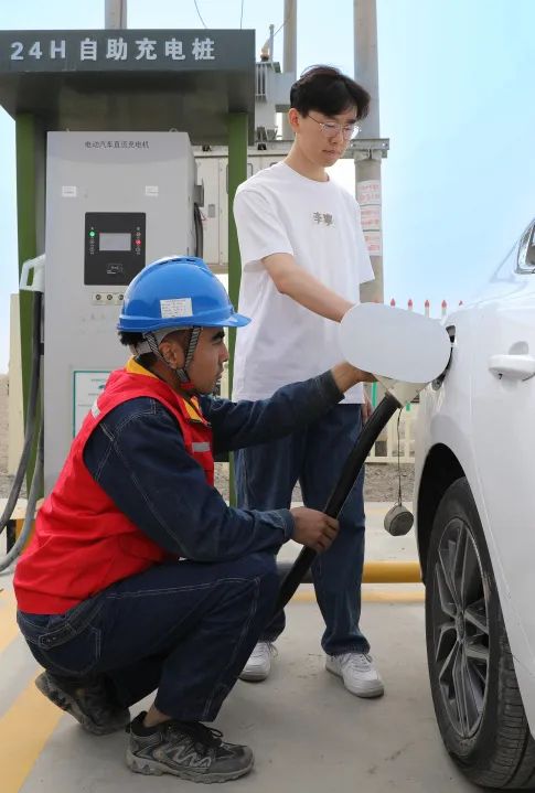 党员服务队为新能源汽车充电。摄影师@成超