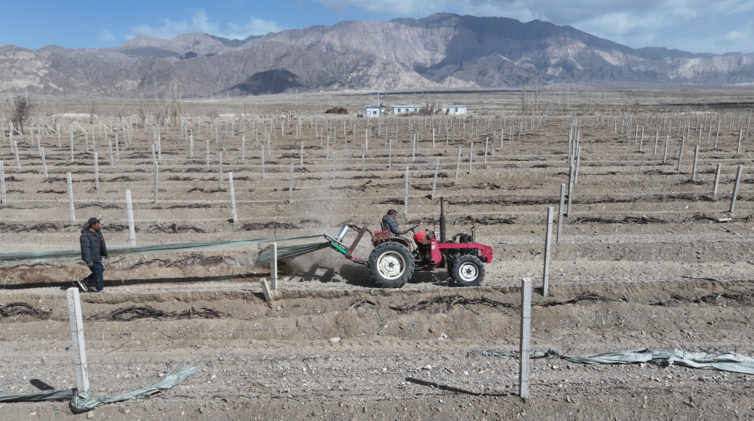 和硕县冠颐酒庄葡萄种植基地负责人常国虎说:“根据现在气候特点,咱们冠颐酒庄的葡萄出土工作从今天开始,现在冠颐酒庄种有酿酒葡萄1000亩,我们计划利用十天时间完成出土工作,出土工作它有两个关键的节点,不能太早也不能太晚,如果掌握不好这个时机,就会造成产量的损失。所以恰当的把握出土时机是种植技术很重要的一项工作,通过我们的观察,我认为这个阶段出土是比较适宜的。葡萄出土工作完成以后,我们要进行葡萄上架、葡萄滴灌的铺设、第一次催芽水灌溉、施肥等工作,后期我们将严格按照酿酒葡萄操作规程完成酿酒葡萄的作业管理,为2026年生产出好的葡萄原料为酒庄提供好高品质的葡萄打下坚实的基础。”